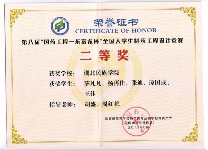 胡盛老师担任学院制药工程专业负责人期间,在学院和全体老师的支持与共同努力下,成功将制药工程专业教研室申报为“湖北高校省级优秀基层教学组织”。担任学院副院长期间,作为重要参与人完成了化学师范专业认证、人才培养方式改革项目、校企共建双师基地等重要工作。在迎接新一轮普通高等学校本科教育教学审核评估期间,他精心起草各类计划总结,撰写各种工作方案等。