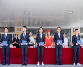校领导分别为获得毕业证和学士学位的毕业生代表拨苏正冠并颁发了毕业证书和学位证书,为优秀毕业生代表颁发了荣誉证书,为考取硕士研究生的同学颁发了奖金。