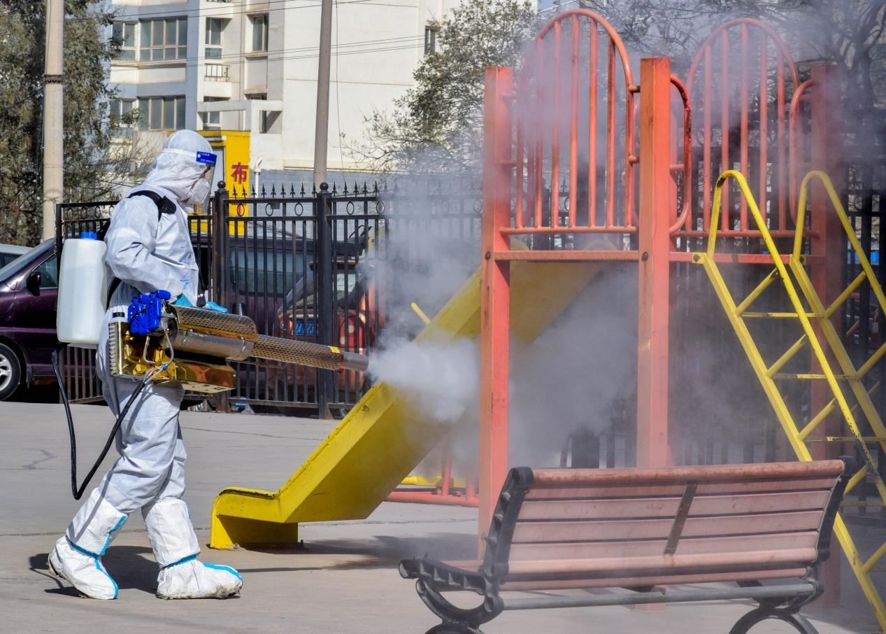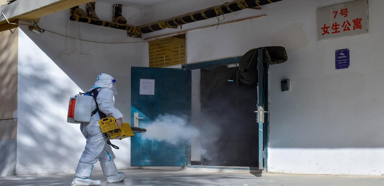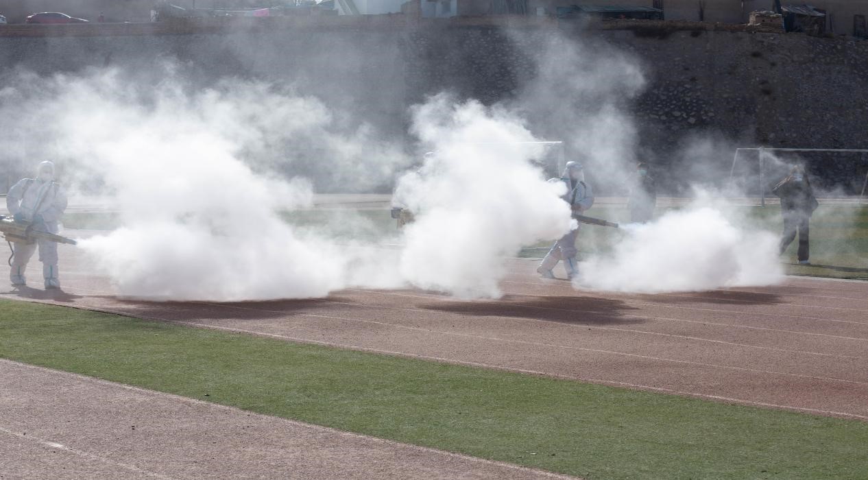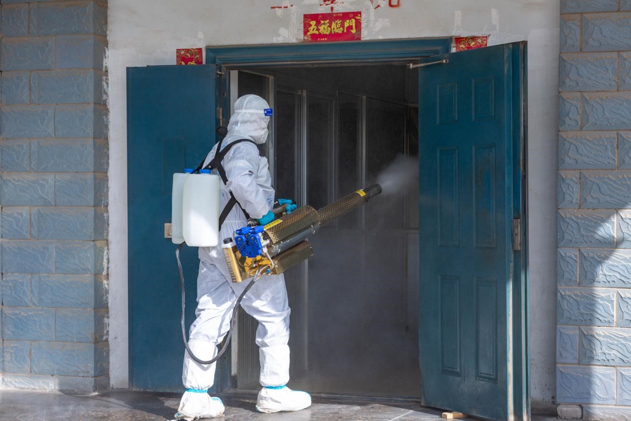 消杀工作持续进行了6个多小时,队员们在兰州市物业协会会长、壹柒玖兰物救援志愿服务队总指挥长张勇和兰物兰保壹柒玖应急支援队第三中队队长霍志强的带领下,全副武装,手持消毒烟雾机、身着防护服、戴着防护口罩,严格按照卫生消毒管理的标准规范操作,采用“地毯式”消杀方式,对学校南北校区的教学楼、综合教学楼、图书馆、体育馆、餐厅、学生公寓、田径场、校园广场、校园路面及家属院等区域进行了反复、全面的消毒杀菌。