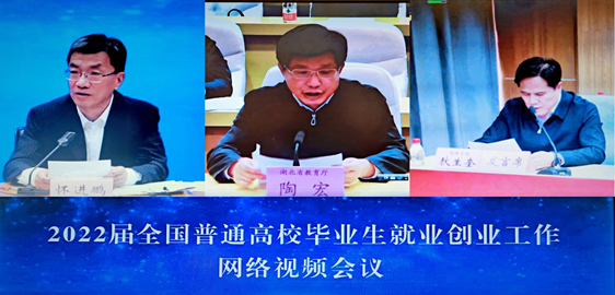 为深入学习贯彻习近平同志在十九届六中全会上的重要讲话精神和会议精神,落实党中央、国务院决策部署,11月19日教育部、人力资源社会保障部召开2022届全国普通高校毕业生就业创业工作网络视频会议,进一步统一思想认识,分析研判形势,对2022届全国普通高校毕业生就业创业工作进行动员部署。教育部党组书记、部长怀进鹏,人力资源社会保障部党组成员、副部长李忠出席会议并讲话,教育部党组成员、副部长翁铁慧主持会议。我校设立分会场,校长陈彪、副校长刘德光出席会议,招生就业处全体工作人员、各二级学院主要负责人、2022届毕业班班主任及辅导员参会。
