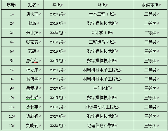 在5月27日由上海外语教育出版社主办的首届“外教社•词达人杯”全国大学生英语词汇能力大赛非英语专业学生甘肃赛区在线答题大赛中,我院2020级数字媒体班学生李银杰同学在全省3950名省级参赛学生当中脱颖而出(甘肃赛区包括兰州大学、兰州交通大学等共有20所本科高校参赛,参赛高校通过前期的校赛选拔出200名学生参加省级大赛),以74.3分的成绩成功入列全国大赛队伍,获得甘肃赛区特等奖。我院还有13名同学分别获得二等奖和三等奖,具体如下: