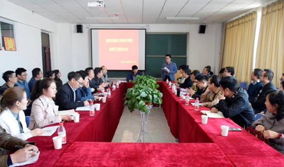 2019年4月12日下午,我院在北校区综合教学楼1108教室顺利召开了本学期第一期教职工培训大会。学院副院长王西林出席会议并以“独立学院的昨天,今天和明天”为主题做了培训,学院副处级以上干部参加会议,人事处处长王定科主持会议。 王西林副院长针对以下三个方面向参加会议的人员进行了认真细致的讲解: