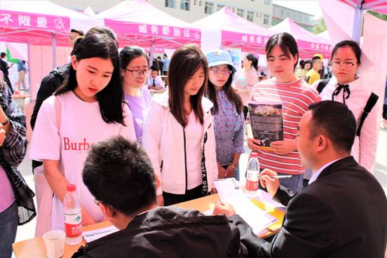 炎炎五月天,盛情双选会。5月21日上午,由甘肃省中小微企业人才精准服务平台、甘肃省人力资源市场、西北人才网与我院共同举办的“兰州交通大学博文学院2019届经济管理类毕业生(夏季)双选会”在南校区图书馆对面篮球场成功举办。本次双选会共有来自全国各地的用人单位53家,校内外600余名毕业生入场咨询洽谈,达成就业意向210人,52名毕业生现场签约。 双选会现场,各用人单位提出各自的详细招聘要求,以便前来投递简历的毕业生更快地根据自己的专业和兴趣爱好等精准选择。招聘现场人头攒动,气氛良好,众多毕业生们十分珍惜此次双选会,他们精心准备了个人简历,积极与企业负责人深入交流。