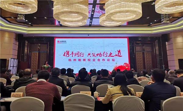 共筑畅行之道”主题校企合作论坛在杭州举行,我院电信工程系主任郭丽君、机电工程系主任苗莉代表学院受邀出席。杭州地铁集团公司党委副书记泮红,人力资源部部长吴维彪、运营公司总经理张大华、副总经理傅园园以及相关部室、运营分公司等有关负责人和来自全国50余家高校领导出席。