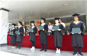 在欢快的音乐声中,院领导为毕业生代表颁发了毕业证书、学位证书、优秀毕业生荣誉证书,并为考取硕士研究生的同学颁发了奖金,并与毕业生代表进行了合影留念。