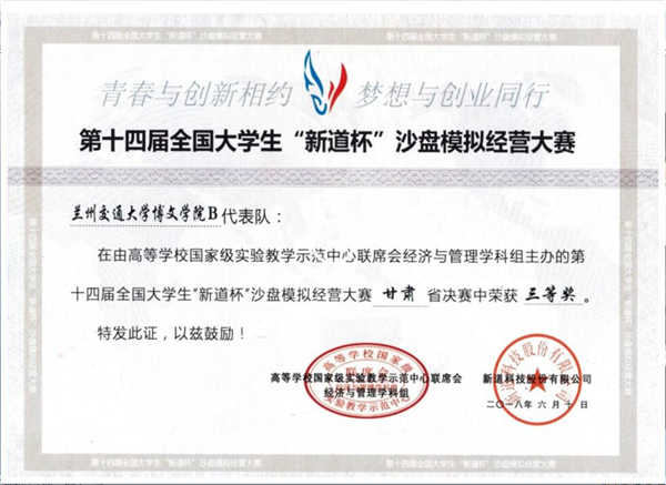 经信管理系在第十四届全国大学生“新道杯”沙盘模拟经营大赛中荣获三等奖