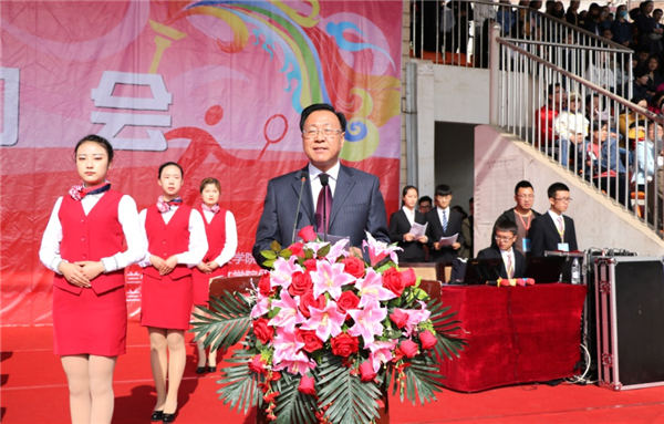 董事长陈玲向运动会致辞词:运动会不仅是学院贯彻落实素质教育的重要载体,更是培养德、智、体、美全面发展的高素质人才,实现全面育人目标的重要举措。我们将以此次运动会为契机,进一步推动学院体育活动的蓬勃开展,继续加强校园文化建设,全面推进素质教育、促进学生全面发展,营造文明健康、积极向上的校园氛围。最后,她祝愿学院各项事业更加繁荣昌盛,兴旺发达;预祝全体运动员取得优异的成绩,预祝本届运动会取得圆满成功!院长陈彪主持开幕式