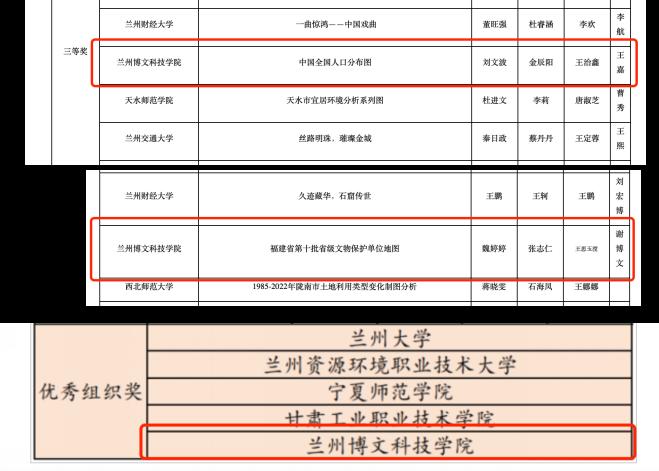 11月25日,由甘肃省教育厅主办的2023年甘肃省大学生GIS地图制图应用技能大赛在西北师范大学和兰州交通大学成功举办。最终,我校工程管理学院选派2021级地理信息科学专业学生刘文波、金辰阳、王治鑫等8名学生在制图组比赛中荣获省级团体三等奖2项,我校荣获优秀组织奖。