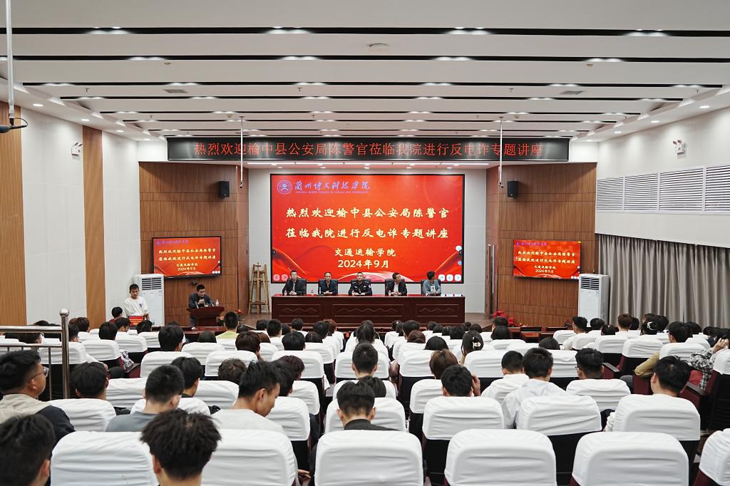 为加强反诈宣传力度,增强新生法治观念和安全意识,9月11日下午,学校邀请榆中县公安局陈冠宇警官在北校区综合教学楼做2024级新生预防诈骗安全知识讲座。副校长刘德光,学生处处长刘秀星,学生处副处长刘广魁、王正茂,交通运输学院副院长杨彪生及部分2024级新生参加本次讲座。