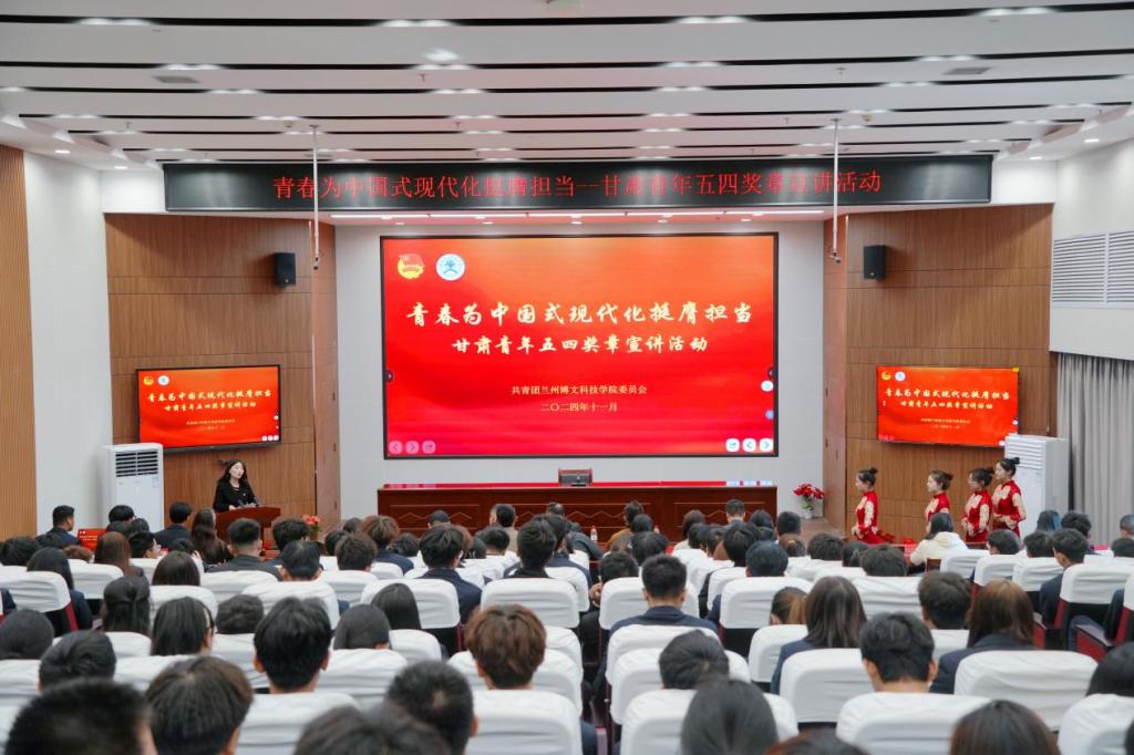为深入学习宣传贯彻习近平新时代中国特色社会主义思想和党的二十大、二十届三中全会精神,充分发挥优秀青年先进典型示范引领作用。11月1日下午,我校举办了“青春为中国式现代化挺膺担当”甘肃青年五四奖章宣讲活动。学校副校长刘德光、学生处负责人校团委全体干部、团员青年、学生代表等200余人参加活动。