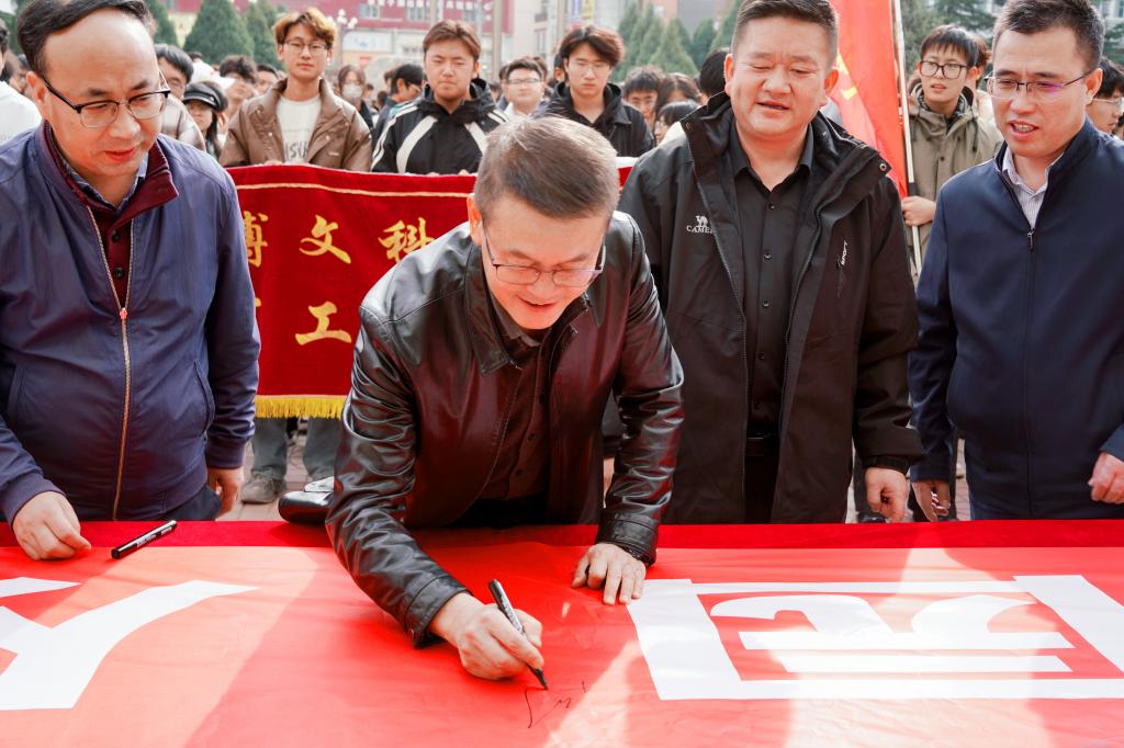 为响应国家关于公共场所控烟政策的号召,营造文明和谐的校园无烟环境,保障师生员工的身心健康。11月13日,学生处联合党委办公室等多部门在南校区教学楼前举办全校控烟禁烟活动启动仪式。学校党委书记阳红,副校长刘德光,人事处、教务处、学生处、资产管理、后勤处等相关部门负责人,学生处全体人员、各二学院学生管理副院长、辅导员及学生代表出席活动。