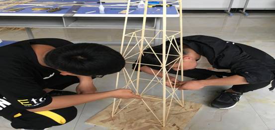 第二阶段(4月27日到5月18日):同学们着手制作各类模型,虚心请教老师,克服困难,精益求精,尽自己最大的能力做好每一个模型桥梁模型制作是一项极富创造性、挑战性的过程,可以考察和培养大学生对所学知识的综合应用能力、实际操作能力、创新意识以及团队协作意识,引导大学生理论联系实践,在实践中丰富和发展理论,突出创新精神。经过长达一月的精心准备在5月18日共收到各类参评模型150多件。