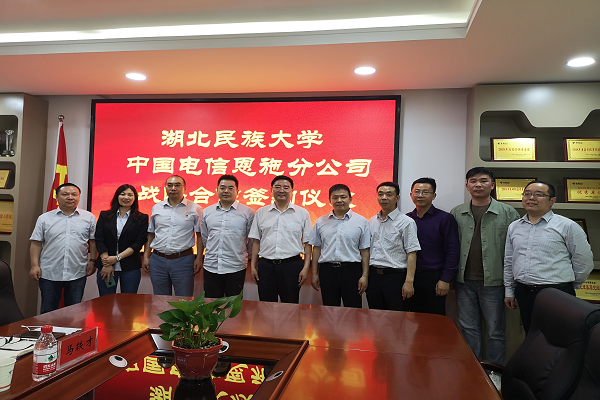本网讯(通讯员 沈济南)5月28日,金年会与中国电信恩施分公司战略合作协议签订仪式在恩施电信会议室举行。金年会党委常委、副校长邓磊与恩施州分公司副总经理汪厚瑞代表双方在协议书上签字,恩施州分公司及相关部门负责人,金年会信息工程学院等相关部门负责人参加签约仪式。
