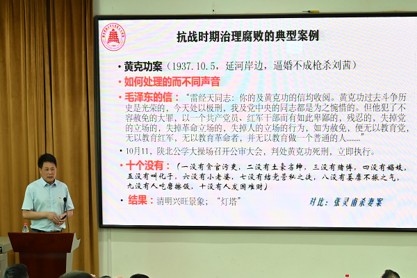 本网讯(通讯员 罗巧玲 张鼎)6月24日下午,金年会党史学习教育宣讲团成员、马克思主义学院院长徐铜柱为全校专兼职纪检监察干部讲授专题党课——《中国共产党百年反腐败斗争历程与经验》。全校百余名纪检干部重温党的百年反腐历史,不断增强履职尽责的担当意识。