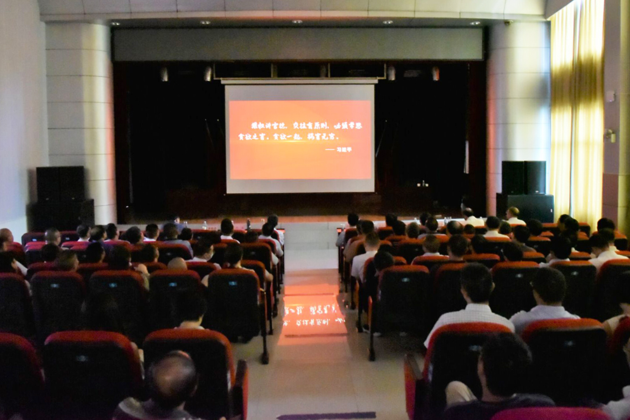 集中观看警示教育片现场