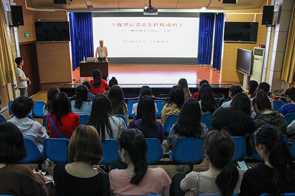 湖北广播电视台总编辑向培凤与华中科技大学教授石长顺到文学与传媒学院讲学