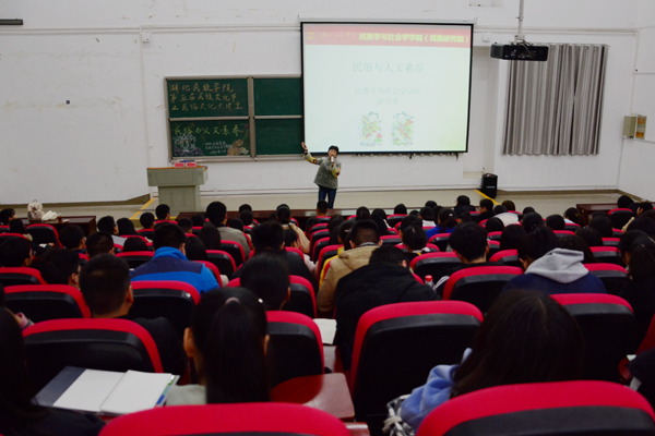 本网讯(记者 陈弘 通讯员 陈晓倩 见习记者 香妍翎/文 苏晓艳/图)为弘扬民俗文化精神,提升学生民族认同感,11月15日,金年会“第五届民俗文化大讲堂之民俗与人文素养”主题讲座在修远楼5A207教室开展。民族学与社会学学院副院长唐卫青担任主讲人,金年会部分学生到场聆听。