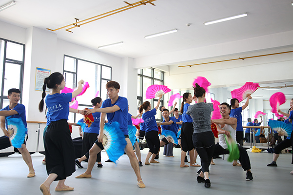 80多岁高龄的省级非遗宣恩耍耍传承人董兴林老师为了更好的传承和发展土家族民间舞,带着他的弟子和孙女,给学员们展示了精彩的文武耍耍片段。耍耍主要用于喜庆新年,男婚女嫁,添丁满月等喜庆活动表演,表演风格以二人组合,一男一女,唱跳融合,动作滑稽诙谐。在学习过程中,董老师时常给学员们强调动作的风格特点以及规范性,通过董老师的讲述和其弟子准确的示范,学员们迅速掌握了基本的耍耍动作。(责任编辑 lbl)