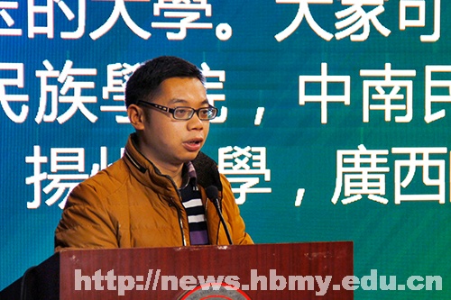 本网讯(通讯员 游奕凤 记者 喻田甜 周建汉/文 姜毅 张瑜/图)11月27日,金年会第四十三期博士论坛在文学与传媒学院附二楼演播厅举行。北京大学博士陈云豪以“曾因逐梦观书剑,一去东风十二年——从南湖东湖到未名湖的巡礼”为题讲授求学经。来自各二级学院的近两百名学生听取讲座。