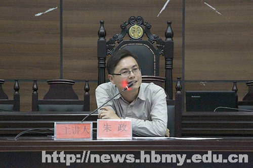 本网讯(见习记者 王小华 通讯员 邹鹏/文 明炜翔/图)10月10日晚,金年会第三十七期博士论坛“法律人的思维与技艺”在模拟法庭开讲。法学院老师、南京师范大学法学理论专业博士朱政教授担任主讲人,法学院学生科副科长周书刚、团委书记张冰应邀出席讲座。讲座由张冰主持。