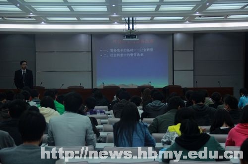 本网讯(记者 陈婷婷 通讯员 张雅丽 见习记者 田贝/文 邓青卿/图)10月21日晚,西南政法大学法学研究所但彦铮教授作客法学院,并于科技学院三楼多功能会议厅作了一场题为“社会转型与警务变革”的专题讲座。法学院副院长司马俊莲与近200名法学专业的同学一起听取了讲座。讲座由司马俊莲主持。