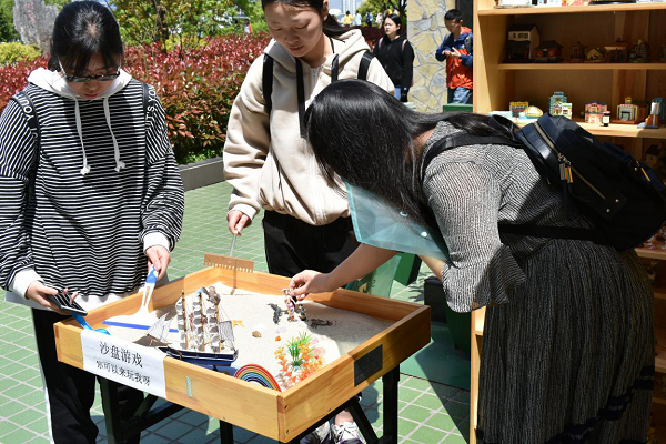 活动现场,同学们根据自己的兴趣和需求选择量表进行测试,还就自己疑惑的问题咨询老师。“其实,我咨询前心里已有结果,只是不明确,经老师指导后便坚定了自己的目标方向。”法学院某学生如是说到。在沙盘游戏区和情绪宣泄区,过往的学生纷纷停下脚步,参与到活动中。此外,活动现场还有心理知识宣传手册与纪念品免费发放,所有的宣传品和小礼物上都有大学生心理健康教育中心的地址和电话,便于学生在需要时联系。