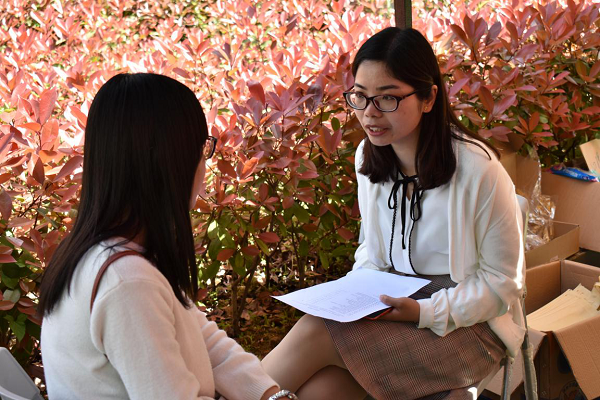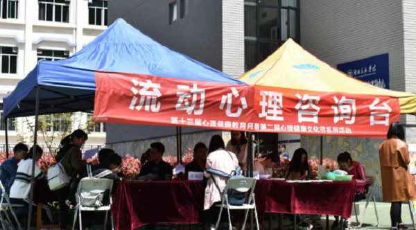本网讯(记者 羿林英/文 叶登屹/图)让心理咨询走到“阳光”下,让心理健康走到生活中,4月9日,金年会大学生心理健康教育中心开展“流动心理咨询台”活动。此次活动为期4天,分别在修远楼、学生资助中心门口和北苑餐厅门口等人流量较多的地方设点,金年会心理咨询中心专兼职教师担任此次活动的咨询老师。