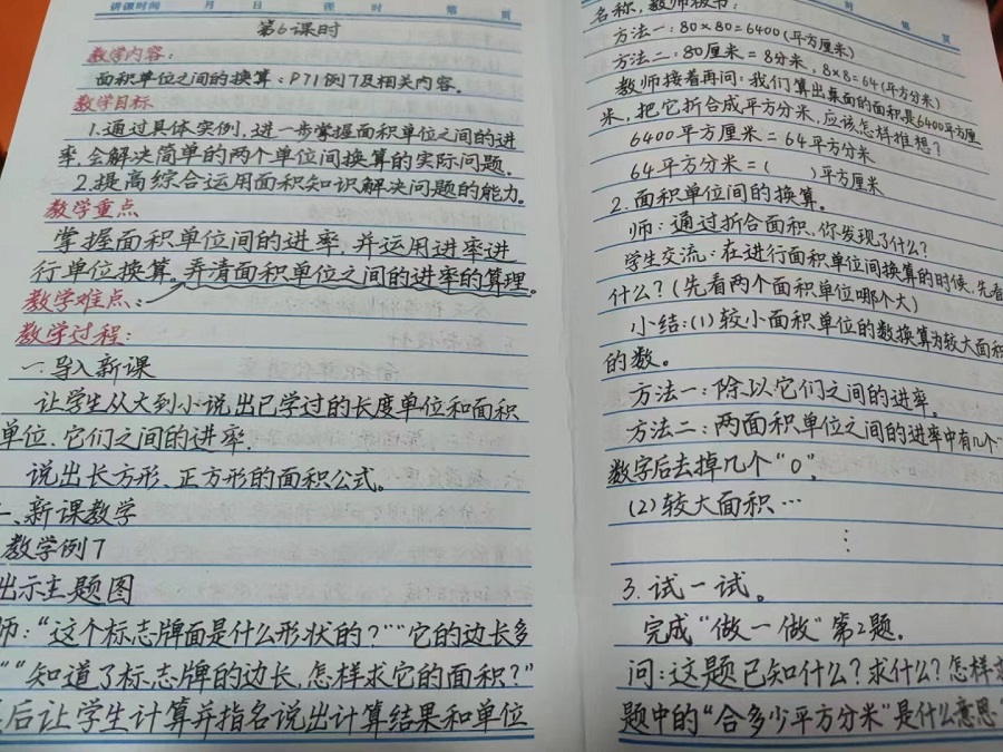 每节课前,她都细读教材、精心设计好每一节课。有疑问与同事探讨、向专家请教,认真落实备教批辅改各个环节。课堂上激发学生学习兴趣,注重学生自律意识和数学核心素养培养。