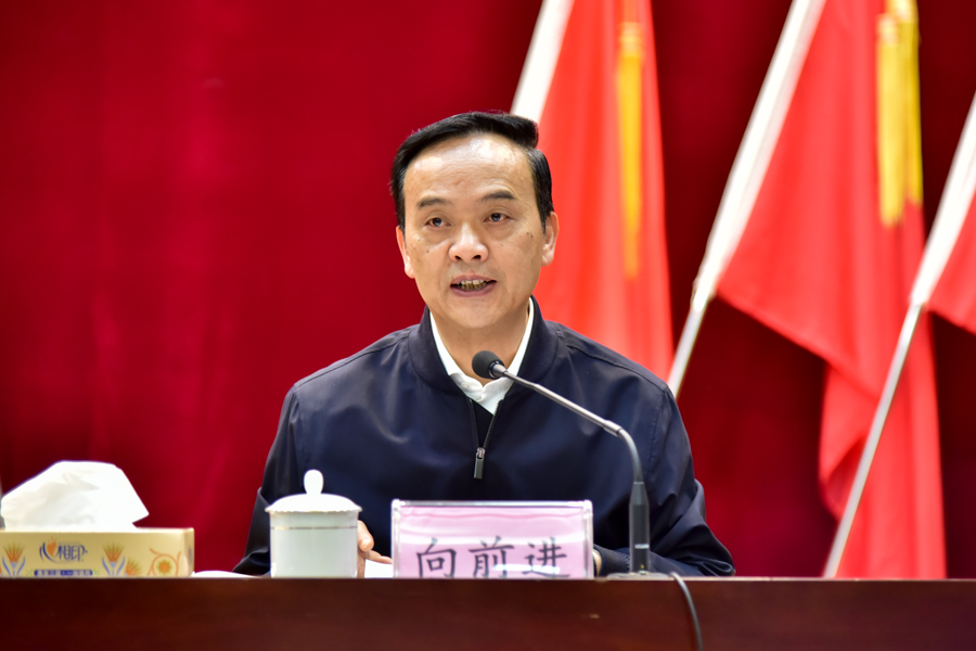向前进强调,要准确把握主题教育的目标要求,在理论学习上用心,坚持读原著、学原文、悟原理,推动习近平新时代中国特色社会主义思想入脑入心、见行见效;深入践行新时代党的建设总要求,把思想政治教育贯穿管党治校全过程,推动党的创新理论进教材、进课堂、进师生头脑,铸牢中华民族共同体意识,培养德智体美劳全面发展的社会主义建设者和接班人。在调查研究上用情,按照党中央关于大兴调查研究的决策部署,围绕省委明确的12个方面调研内容,有针对性地凝练调研课题,组织党员、干部在调查研究中学思践悟党的创新理论,提升运用其研究高等教育发展新情况、解决发展新问题的能力;坚持问题导向,改进调查研究的方式方法,建立问题清单、责任清单、任务清单、措施清单、时限清单,推动全校党员、干部查实情、破难题、抓落实。在推动发展上用力,深入开展“推拖揉绕”专项整治,教育引导全校党员、干部紧盯“申博”的短板和弱项,转作风、抓落实、促改革、创一流;深化党员干部“下基层、察民情、解民忧、暖民心”实践活动,完善解决民生问题的长效机制,进一步提升师生的获得感、幸福感、安全感。在检视整改上用劲,以刀刃向内的狠劲检视问题,列出问题清单,找准问题症结,着力从思想根源上解决问题;坚持分类整改与集中整治相结合,边学习、边对照、边检视、边整改,即知即改、立行立改、应改尽改。在建章立制上用功,熟练掌握习近平新时代中国特色社会主义思想蕴含的领导方法、思想方法、工作方法,不断提高发现问题、解决问题、举一反三的能力,通过“当下改”与“长久立”相结合,推动主题教育常态化、长效化。