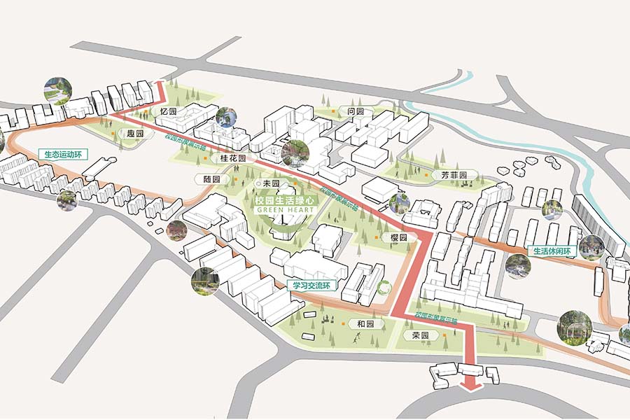 “‘一环’主要通过增花添色、能绿尽绿的方式,采用自然式植物配置,实现校园生活环境简洁、美观、自然,搭接体验自然的桥梁,实现移步换景的目的。同时,拆除行道两边硬质铺砖,将小块平地进行地形重塑,减少裸露,实现地面软化,种植花灌木并打造小花境,增强生机与活力。”据后勤保障部相关负责人介绍,这样的设计能够让校园环线更具美感。