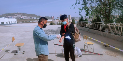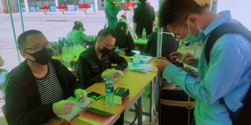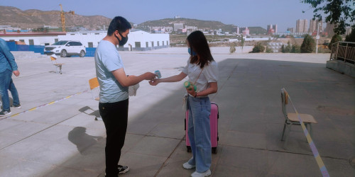 在北校区体育馆旁:一查、二验、三测,按部就班,有条不紊,志愿者与同学们共同守护好第一道防线。在此错峰返校期间,同学们从新校区进入,保持安全距离,有序排队,全程佩戴口罩,持学生证、身份证在机电工程系报到处报到;测量体温;收取返校承诺书;查看健康出行码和乘车车次;随后发放通行证同学们进入宿舍。