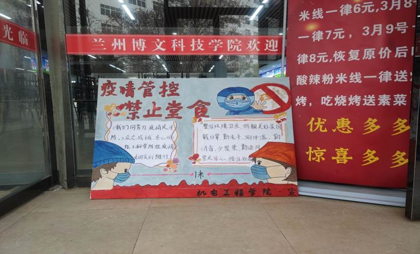 自此措施开展以来,为了保证疫情期间同学们能够潜心向学,学校每个部门为疫情防控做了充分安排和精心布置。餐厅就餐是学生在校生活的重要组成部分,疫情严控责任之重自不待言。学校对餐厅的防控做出指示,要以高标准、严要求做好细节防控为前提,要求防疫期间学生就餐遵循“严格佩戴口罩、宿舍分组带饭、食堂间隔一米、不在食堂逗留”的原则。减少人流量,从而降低感染的可能性。目前,已经到了疫情防控白热化阶段,形势仍十分严峻,有效防止病毒传染和感染是形势所迫,更是现实所需。我们作为学校的一份子,应尽自己微薄之力,做到少聚集,出门戴口罩,做到心中有防范意识。在出入食堂门口时,应佩戴口罩,做好自我防护,每天每个宿舍只配一名同学带饭回寝。