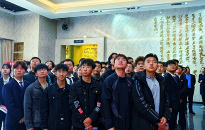 向人民英雄敬献花篮仪式结束后,全体师生前往到红星照耀中国纪念馆。面向鲜红的中国共产党党旗,机电工程学院党委书记、院长苗莉老师举起右拳,带领青年学生们重温入党誓词,铿锵有力的宣誓声响彻大厅。“我志愿加入中国共产党,拥护党的纲领,遵守党的章程,履行党员义务,执行党的决定,严守党的纪律,保守党的秘密,对党忠诚,积极工作,为共产主义奋斗终生,随时准备为党和人民牺牲一切,永不叛党。”80个字的入党誓词,包含了党的性质、宗旨、纲领、目标等,从党的十二大写入党章沿用至今,是共产党人初心使命的集中体现。更是通过对党史知识深入学习,加强对广大青年的理想信念教育,引导广大青年树立共产主义远大理想,坚定中国特色社会主义共同理想,坚定听党话、跟党走的政治信念,在强国建设、民族复兴的历史潮流中确立正确的人生目标,为一生的奋斗奠定基石。
