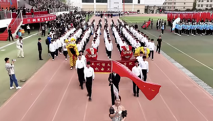 开幕式上,机电学子精神抖擞、斗志昂扬,迈着整齐的步伐走过主席台,与众不同的红白表演服在朝阳下熠熠生辉,成为开幕式里一道靓丽的风景线。