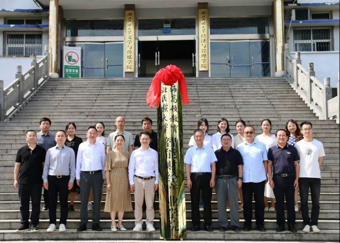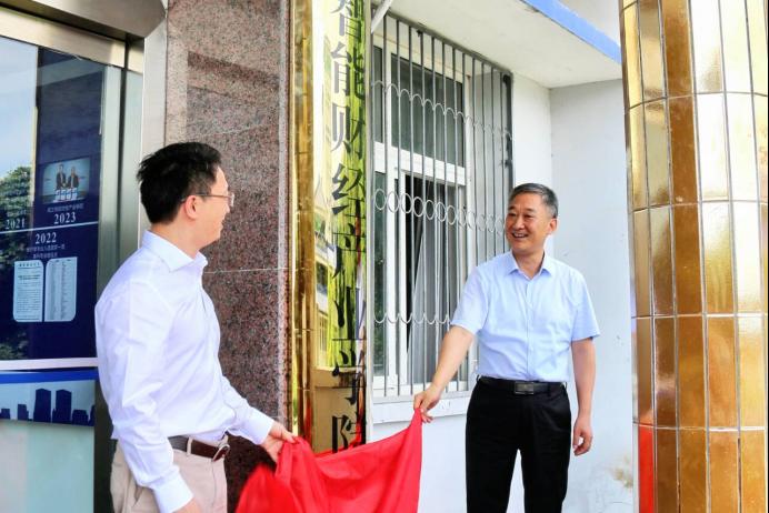 会后,参会成员移步至文瀚楼大门,共同见证jinnian金年会与上海高顿教育“智能财经产业学院”的揭牌。