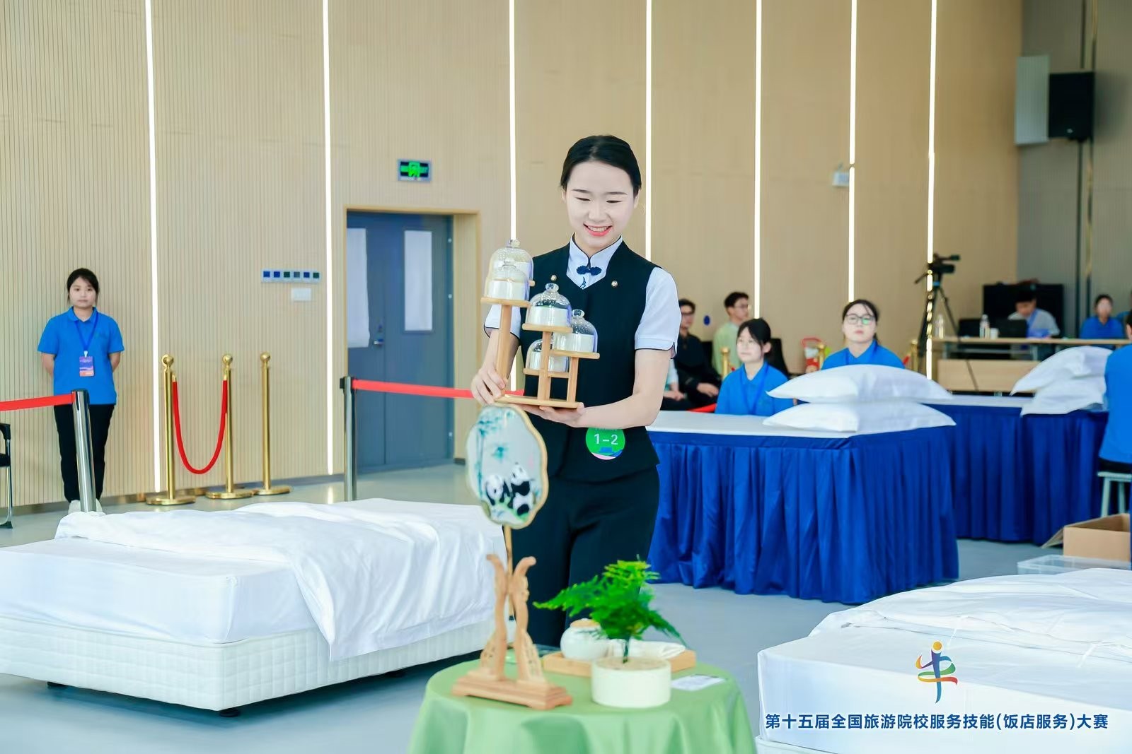本次大赛吸引了全国近70所高校594名选手同台竞技,赛事设置理论知识考核、英语口语测试、实操技能三大板块,全面考察选手的专业素养与综合能力。在紧张激烈的角逐中,田艳同学凭借规范从容的西餐摆台设计摘得一等奖;姜志容、熊坪会两位同学分别在中式铺床与鸡尾酒调制项目中获二等奖;李慧莲在中餐摆台中收获三等奖,充分彰显了金年会旅游管理专业人才培养的卓越成效。