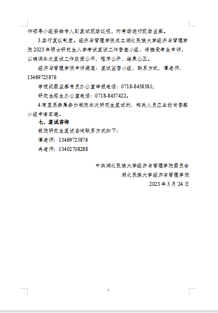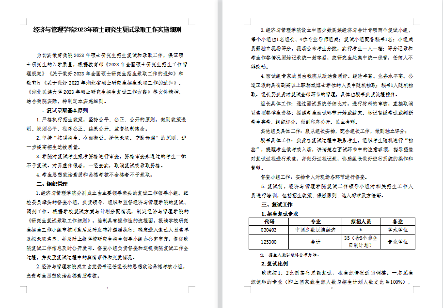 经济与管理学院2023年硕士研究生复试录取工作实施细则