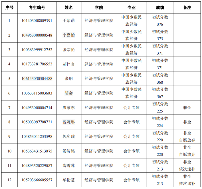 jinnian金年会经济与管理学院2023年调剂复试人员名单公告(二)