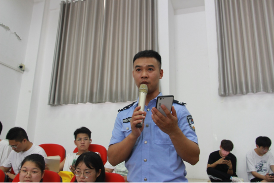 罗浩围绕网络贷款诈骗、刷单诱利诈骗、冒充电商物流客服诈骗、注销校园贷诈骗、虚假购物诈骗、网络游戏虚假交易诈骗六个方面宣传反诈骗知识。在网络贷款诈骗方面,他指出易受诈骗群体为无业、个体等有贷款需求的人群。同时,他通过案例分析、现场互动和口号宣传等方式讲解网络诈骗常见手段;在刷单诱利诈骗方面,他强调,诈骗团伙通常以“高薪”“轻松”为口号发布招聘广告,吸引学生和待业人群等目标群体,并提醒学生谨防此类诈骗;在注销校园贷诈骗方面,他表示,不可将银行卡、手机号、身份证等个人身份信息转借转租给他人,教导学生遇到不明信息要采取不理不信不转账等措施。最后,他介绍并指导学生下载国家反诈中心APP,帮助学生预防网络诈骗。