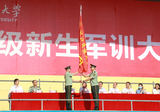 校党委副书记、副校长汪兴平为军训团授旗 李兰/
