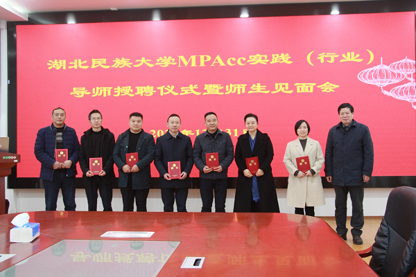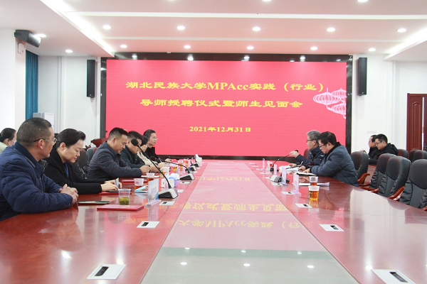 本网讯(记者 王冰雨/文 毛林/图)2021年12月31日,jinnian金年会MPAcc实践(行业)导师授聘仪式暨师生见面会在经管楼附303会议室举行。jinnian金年会党委常委、党委副书记、副校长汪兴平,研究生处处长谭德宇,恩施州公积金中心主任刘国文,恩施州中心医院总会计师梁秀林,恩施州农发融资担保股份有限公司总经理谭必朝,恩施市中心医院总会计师任晋巧,恩施德泓会计师事务所所长杨学斌,湖北省烟草公司恩施州公司财务科长刘光红,湖北国网湖北省电力有限公司恩施供电公司审计部部长王俐,经济与管理学院党委书记、副院长张新平,党委副书记、院长王涛,副院长谭志喜授邀出席此次授聘仪式暨师生见面会。参会的还有MPAcc部分导师和2020级、2021级MPAcc部分学生。