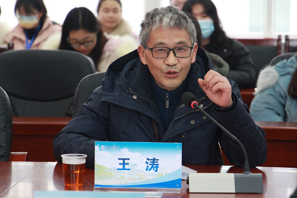 王涛发言。他从会计专硕点的创办、报考人数、双导师制、研究生培养规格与要求等方面介绍学校发展情况。同时,他围绕工作经历、会计实践论文发表情况、财务制度规范流程体系和建设、企业内部控制建设、创造性工作成果介绍校外导师。