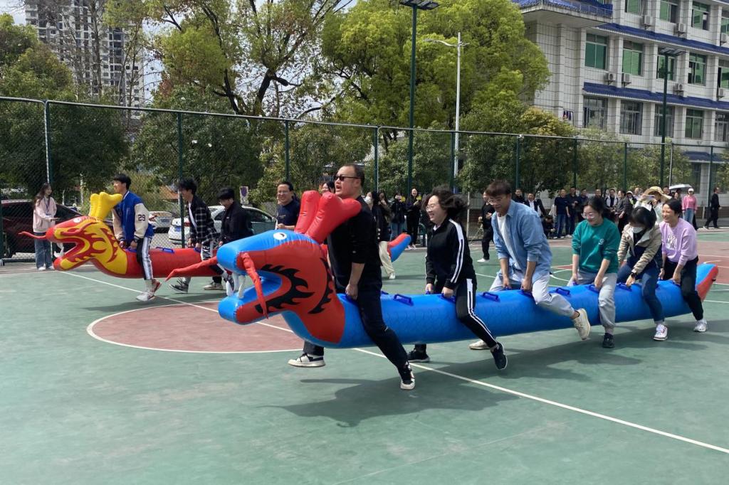 此次运动会分为趣味项目、气排球两个环节。在趣味项目中,教职工参加陆地龙舟、拔河、跳绳接龙和50米滚铁环迎面接力等比赛,参赛人员同心协力、奋勇拼搏;在气排球环节中,参赛人员团结互助,展现新时代教师的良好精神面貌。