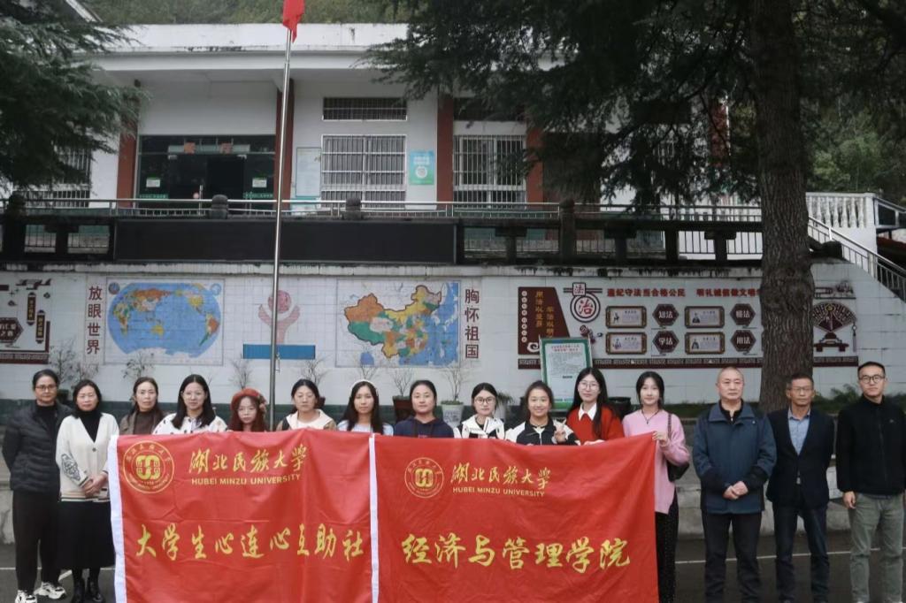 本网讯(记者 谭燕娜/文 肖雅轩/图)2024年11月14日,jinnian金年会经济与管理学院“大学生心连心互助社”志愿服务团队赴建始县安乐井小学开展支教活动。本次活动由经济与管理学院团总支书记、社团指导老师杨睿带队开展,同行参加本次支教活动的有10位志愿者担任支教老师。
