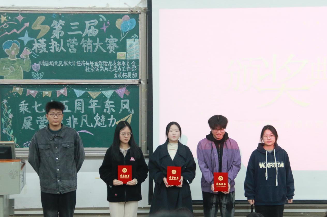 经过复赛的激烈角逐,共有六支队伍进入决赛。最终,“世界五百强队”荣获一等奖。“世界五百强队”从产品特点、优势、功能三个方面介绍卡套,提出采用合作推广、发放会员福利、定制个性化服务等方式宣传产品,达到吸引关注、拓展受众的效果;“‘营’运而生队”主讲人采取模拟场景、观众互动的形式进行现场讲解,开场以视频介绍“捏捏”这一营销产品,强调其具有受众群体广、分享性高、耐用性好等特点,并提出“牺牲价值法”、“主题营销法”等营销方式;“东方不buy队”推出将中华优秀传统文化与绿色发展理念相结合的环保手绘扇,该产品在价格上采用低价、差异化定价、折扣定价的营销策略,以此吸引不同消费层次与需求的客户群体。