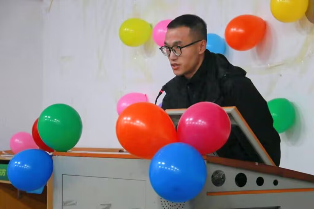 第一届社长舒雄澜发言。他首先回顾心连心互助社的发展历程,分享参加的各类支教活动的亲身体验,并表达自身对社团深厚的感情。他鼓励新干事积极参加社团活动,不断体验新鲜事物,在社团中度过充实的大学生活。最后,他希望社团新成员能够不忘初心、满怀热爱、脚踏实地,共同为社团的发展贡献自身力量。