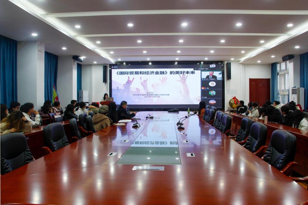 此次讲坛邀请的主讲人为本院2005届会计专业杰出校友喻天柱。喻天柱目前就任深圳市华融基金销售有限公司总经理,先后在中审会计师事务所有限公司、招商期货有限公司、华融金融金融集团、深圳市有信达供应链集团股份有限公司任高管,参与过证券、期货、基金、担保、支付、小贷、国际物流、跨境电商、冷链产业园等业务的商业运作。喻天柱为大家带来关于“‘国际贸易和经济金融’的美好未来”的专题讲座。