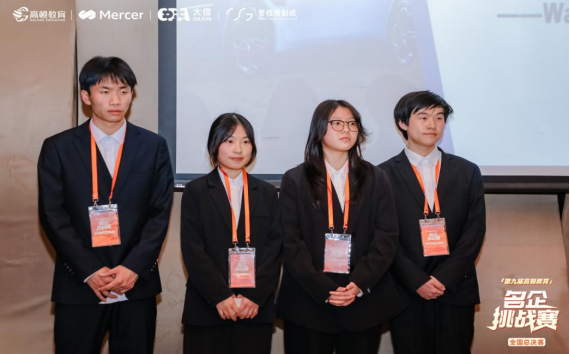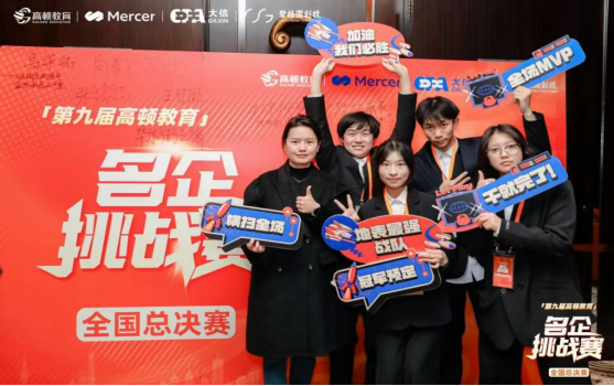 本网讯(易泽铭/文,高顿教育/图)2025年3月29日下午,由高顿教育、Mercer、大信、碧桂园科技联合主办的第九届高顿教育“名企挑战赛”全国总决赛,上海陆家嘴凯宾斯基酒店圆满落幕。来自六大赛区的高校精英队伍齐聚一堂,围绕商业案例展开了激烈角逐。我院会计学ACCA方向班“华尔街之狼队”作为本次赛事中唯一一支“双非”院校代表队,凭借出色的发挥,成功跻身全国十强。一同进入决赛的还有上海交通大学、浙江大学等知名高校代表队,这些队伍均从12000余名参赛者中脱颖而出,代表了各赛区的最高水平。