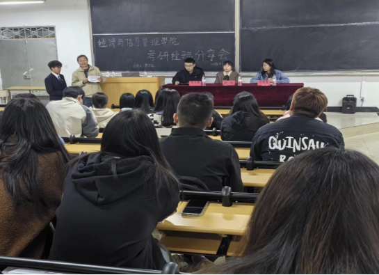 为了进一步提高我院2020级学生的考研热情,明确考研目标,掌握相关考研技巧,了解更多考研信息,2023年10月19日晚19:30,经济与信息管理学院在南校区教学楼西T3教室组织了考研经验分享暨交流会。会议由副院长陈学红主持,诚邀了学科带头人兰州财经大学会计学专业硕士生导师孔陇、兰州财经大学会计学专业在读硕士研究生和梦鑫、袁力翔参加。