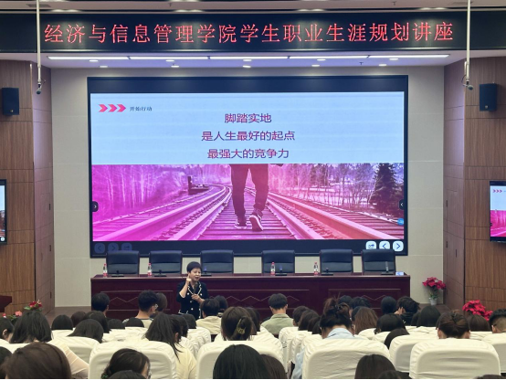 为帮助同学们更好的规划职业生涯,提升就业竞争力,拓宽就业视野,2024年9月26日,经济与信息管理学院邀请了甘肃省财经人才培养创新示范基地负责人张莫在北校区综合教学楼学术报告厅开展了一场关于职业生涯规划的讲座。讲座由经济与信息管理学院院长张利主持,教学管理副院长陈学红、学生管理副院长刘炳田、各班主任及2022级学生共同参会。